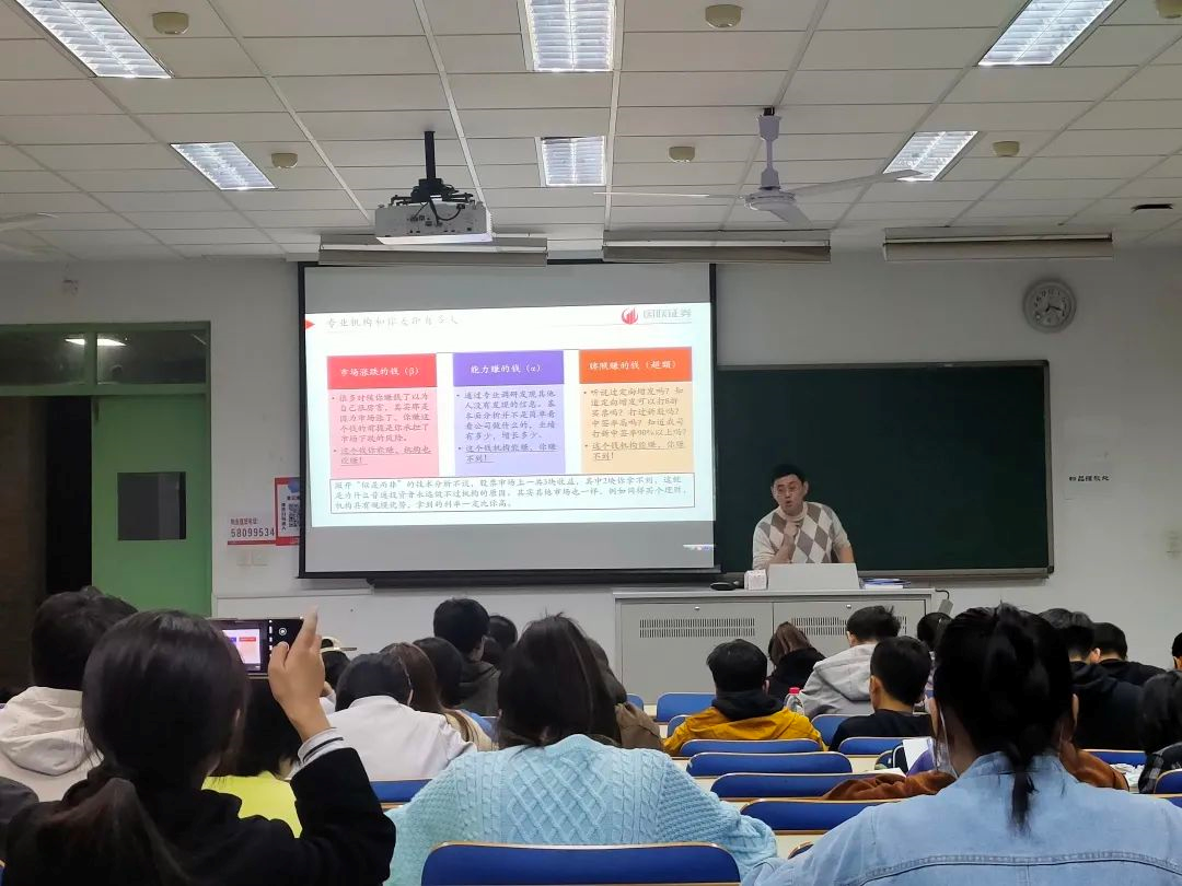 讲座最后,陈老师以新冠疫情、注册制改革、A股去散户化三个重要事件对投资市场的影响进行了总结。陈老师工作经验丰富且幽默健谈,讲座过程中妙语连珠,对专业名词的运用又体现出他的专业严谨。参加此次讲座的同学们纷纷表示受益匪浅!期待与陈老师的下一次见面!