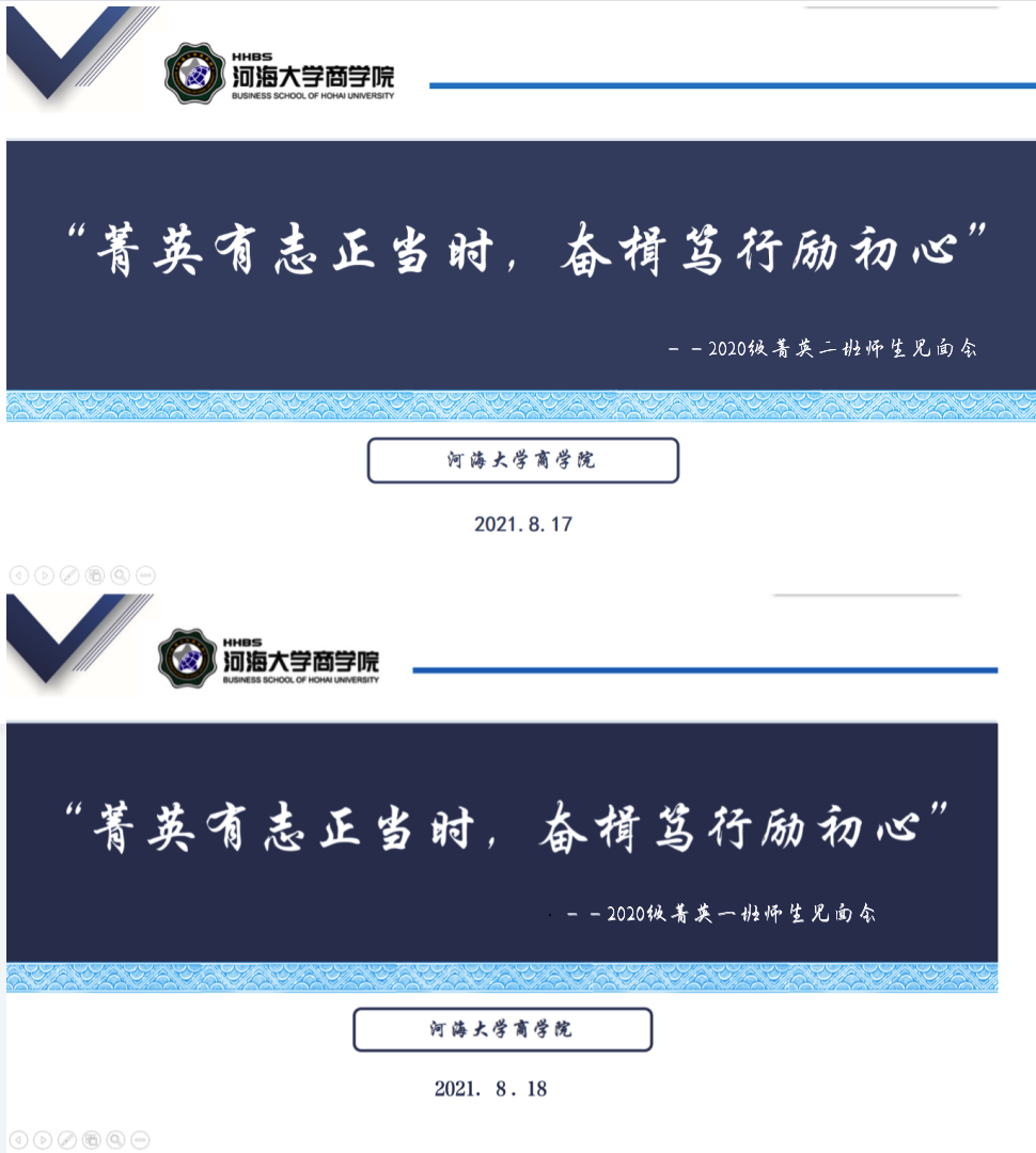 2021年8月17日、18日,2020级菁英一、二班分别在线上召开了“菁英有志正当时,奋楫笃行励初心”师生见面会。菁英一班班导师高辉老师、二班班导师李祎雯老师,糖心视频 团委书记陈璐老师、2020级辅导员赵晨洁老师以及2020级菁英班全体成员参加本次会议。