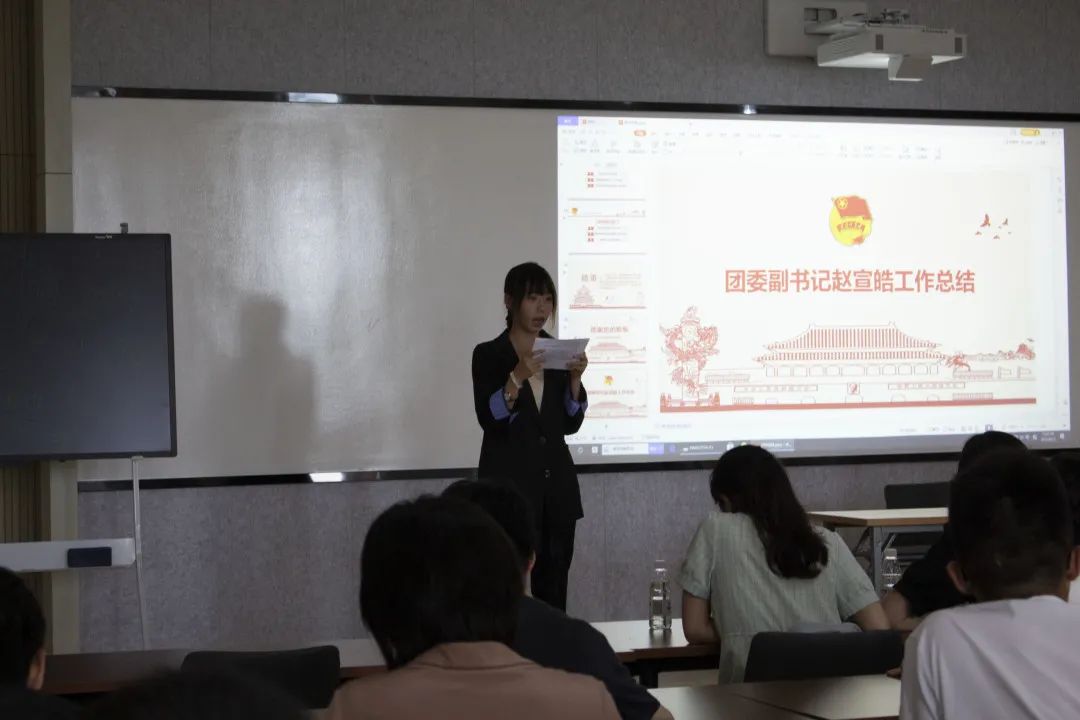 会议的第二项议程,是由团委副书记赵宣皓同学对团委的整体工作进行总结。赵宣皓同学首先对2021年上半年团委取得的成绩表达了肯定,对支持和帮助团委的各位领导与老师表达了衷心的感谢。其次,他从自身工作经历出发,针对各个部门存在的问题,提出了合理的建议,为糖心视频 团委将来的发展指明了方向。最后,赵宣皓同学对糖心视频 团委在2021年下半年的新发展表达了期待。