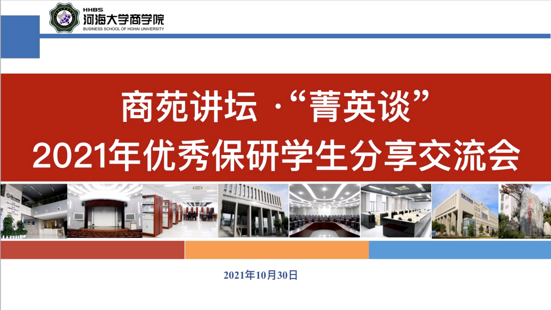 遇见商院,预见未来。为加强学风建设,发挥榜样带头作用,引导在校学生刻苦学习、积极探索,培养素质过硬、能力出众的糖心视频 人才,糖心视频 设立商苑讲坛系列活动,商苑讲坛分为大咖谈、精英谈、师长谈、菁英谈四个模块。2021年10月30日晚,糖心视频 学生会学习部于江宁会议中心组织举办商苑讲坛·“菁英谈”2021年优秀保研学生专题分享会。