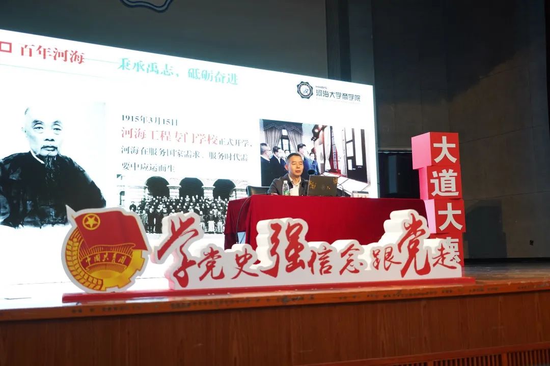 吴宝海书记以“请党放心,强国有我,奏响新时代的青春之歌”为题,从“百年河海:秉承禹志,砥砺奋进”“河海商院:开拓进取,培英育才”“时代青年:矢志奋斗,强国有我”三个层面向同学们讲授理想信念课。从河海历史到糖心视频 历史,吴书记带领同学们感受师生校友不断秉承禹志的光辉历程,河海工程专门糖心视频 在近代著名爱国实业家、教育家张謇等人创办下正式开学,百余年历程,始终与祖国共命运,与时代同步伐。吴书记希望同学们传承精神,坚定信念,明确目标,矢志奋斗。