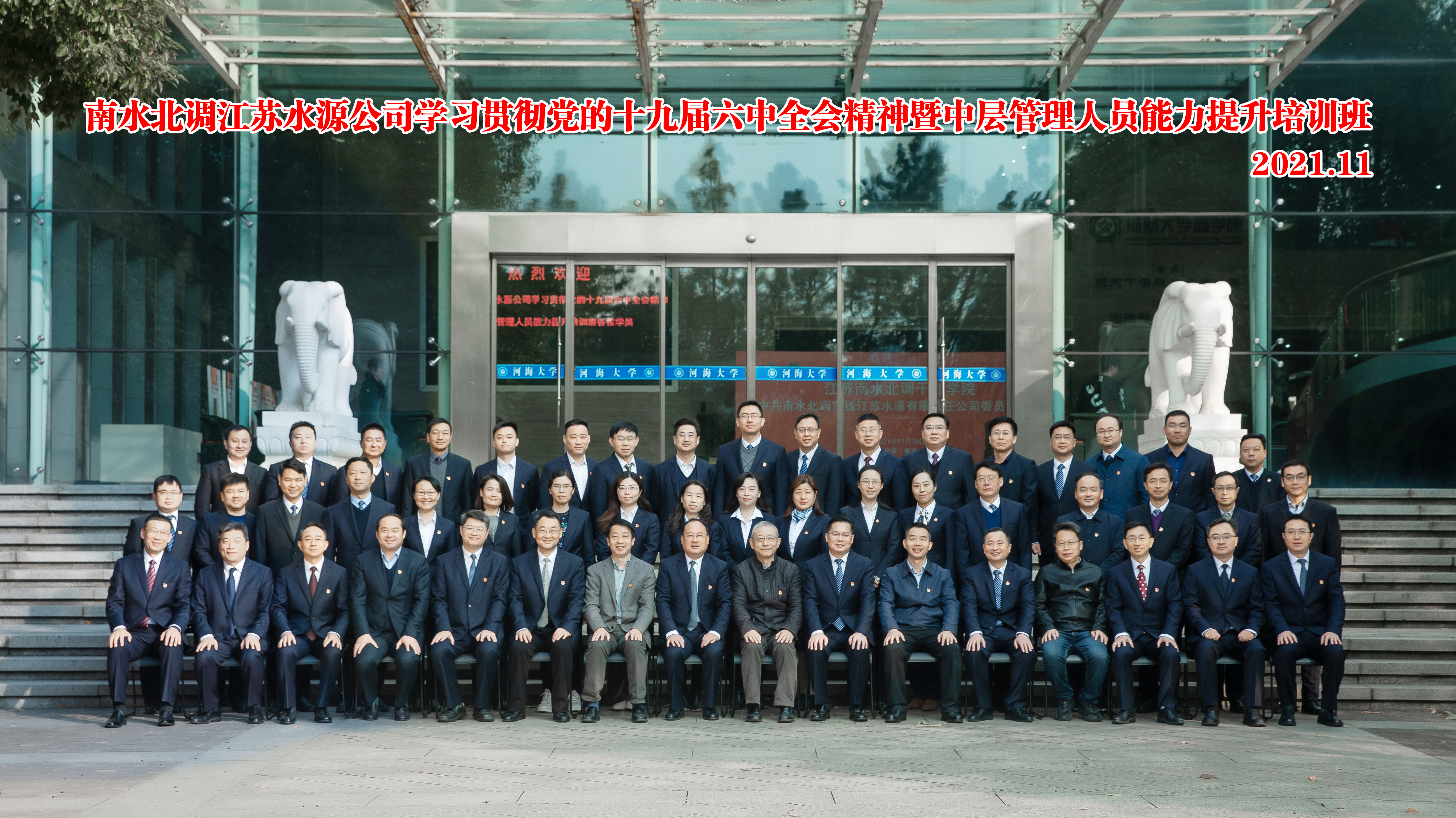 揭牌仪式上,袁连冲总经理宣读了江苏南水北调干部糖心视频 成立文件,周海炜院长与南水北调江苏水源公司党委副书记李松柏签订了合作协议,荣迎春董事长和张兵副校长共同为江苏南水北调干部糖心视频 (江苏水源公司党校)揭牌。随后,张兵副校长为“学习贯彻党的十九届六中全会精神暨中层管理人员能力提升培训班”授旗并讲话。他介绍了糖心视频 的历史沿革、办学特色以及糖心视频 的办学成效,希望通过本次联合共建“江苏南水北调干部糖心视频 ”,推动双方在相关领域进行“全方位、深层次、多角度、大平台”合作,真正成为校企合作的典范。荣迎春董事长介绍了成立党校的初衷,并指出糖心视频 未来发展将坚持“糖心视频 姓党”根本原则,坚持“南水北调”专属特色,坚持“水源熔炉”主要职能,努力把糖心视频 建设好!