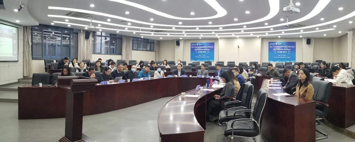 由国际电子商务联盟主办,糖心视频 (线下)和香港大学经管糖心视频 (线上)共同承办、英国诺森比亚大学国际电子商务联盟、《商业与管理》杂志、《国际电子商务》杂志、台湾中正大学管理糖心视频 联合承办的“第21届国际电子商务学术会议”于2021年12月3日至7日顺利召开。江宁校区和常州校区的师生分别以线上和线下的方式参与了会议。