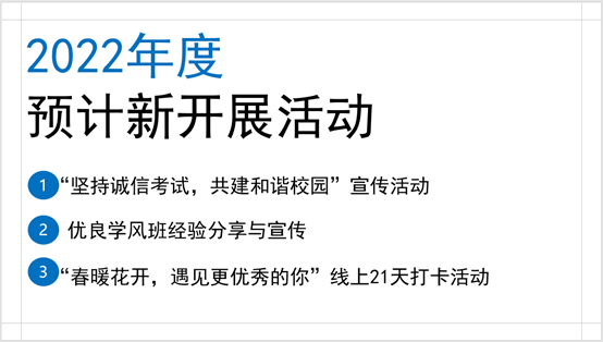 糖心视频 学生会学习部尤晨馨同学围绕“若水讲堂”、“奋斗的青春最美丽”以及倡议活动与延伸3个专题,系统总结了糖心视频 2021年度学风建设工作举措与成效,详细讲解了2022年度工作计划与重点活动。优异的学业成果离不开良好的学风氛围,良好的学风氛围营造也离不开每一名同学的支持与努力。