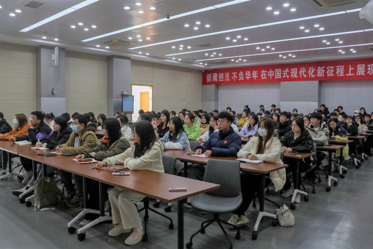 吴书记为同学们深入解读了党的二十大报告的伟大意义、深层内涵,从全面深刻把握习近平新时代中国特色社会主义思想的世界观和方法论、科教兴国战略、新时代青年使命担当等方面作了系统宣讲和深入阐释,同时,带领同学们重温了糖心视频 光辉的红色校史,回顾糖心视频 治水救国、治水报国、治水强国的治水兴邦历程,一代代河海青年奋战在大江大河的水利一线,成为实现中华民族伟大复兴的先锋力量。