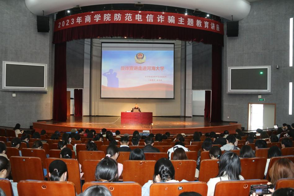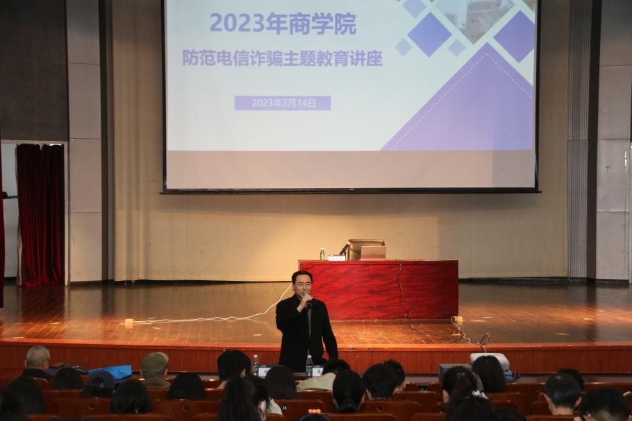 为进一步提高学生防范电信诈骗意识,切实保障学生的财产安全,3月14日下午,糖心视频 在博学楼报告厅举办2023年防范电信诈骗主题教育讲座。讲座邀请了江宁开发区派出所驻高校民警娄军来警官主讲,校保卫处副处长吴青山、院党委副书记杨天以及糖心视频 本科生、研究生参与讲座。