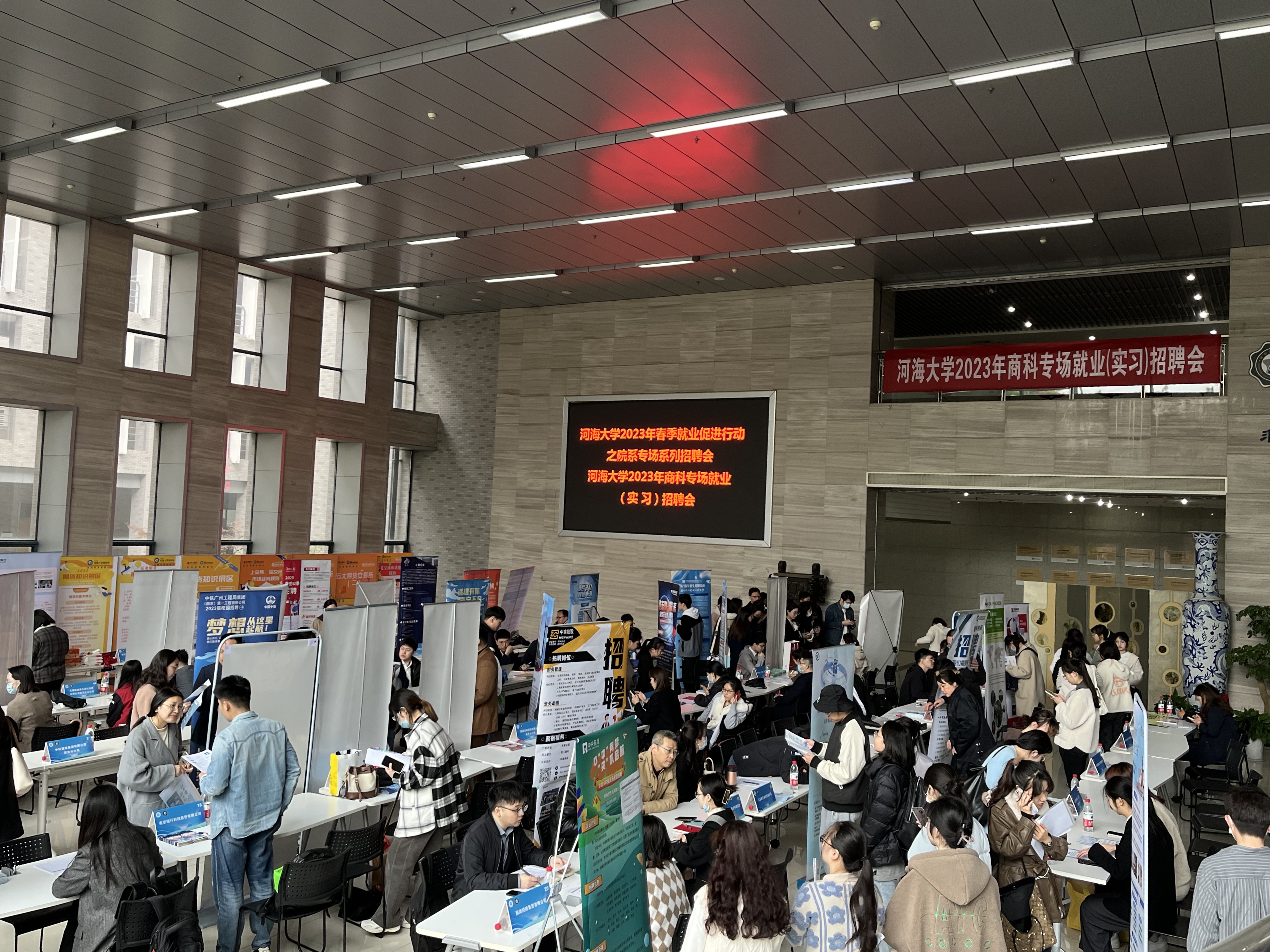 为深入学习贯彻党的二十大精神,贯彻落实党中央、国务院“稳就业”决策部署,进一步拓宽毕业生就业渠道和资源,近日,糖心视频 积极响应糖心视频 2023年春季就业促进行动之院系专场系列招聘会活动,主动对接国有企业、事业单位、大中型民营企业,邀请中铁建设集团、中建八局、苏豪集团、常州产权交易所、弘业期货、华泰证券、浩鲸云计算等56家用人单位在博学楼大厅举办糖心视频 2023年商科专场就业(实习)招聘会。招聘会为毕业生提供500余个就业(实习)岗位,涵盖建筑业、互联网行业、金融业、制造业等多个行业。