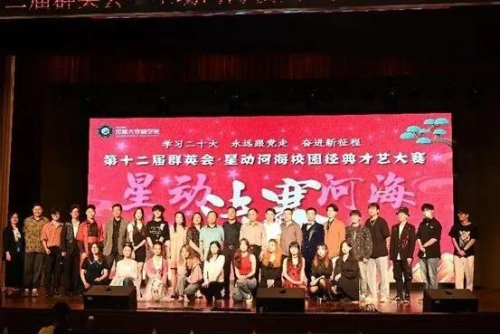 第十二届群英会·星动河海校园经典才艺大赛从4月启动,经过培训、初赛、复赛,共有12组选手进入决赛环节。决赛分为“向未来,学习二十大”“践初心,永远跟党走”“担使命,奋进新征程”三个篇章。