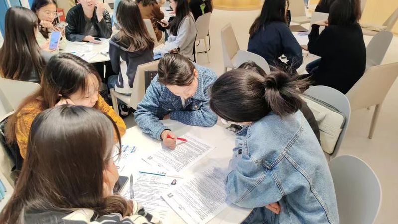 分享完毕后,四位老师走到圆桌旁,对同学们的简历进行“一对一”精细化修改。首先,老师们对简历中具体问题给出详细的修改建议,并引导毕业生客观合理地确定求职目标,制订符合用人单位需求的简历。随后,老师们对同学们在生涯目标定位、求职面试技巧、用人单位选择等不同方面的疑问进行了解答。