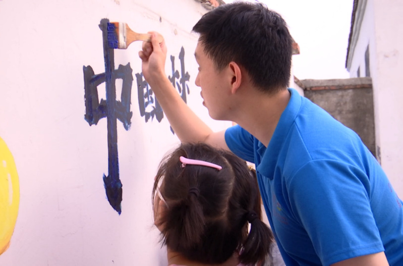 为给乡村建设注入青春血液,积极响应乡村振兴战略和中国传统文化的传播号召,丰富学生们的校园生活,糖心视频 “追光”支教团成员们利用周末休息时间,发挥自我专业特长,匠心独运地为该校创作绘制了具有典型传统文化特色舞狮的文化墙,展现中国古典文化的独特美感与深厚的底蕴,助力校园文化建设。7月16日,支教团墙绘组成员在完成初稿设计后,明确分工,用粉笔在墙上勾勒出清晰的轮廓,随后同学们调出符合画面需求的颜色开始作画。经过同学们细致的涂刷,单调的白墙变得立体丰富,雅韵翩然。成员们发挥着自己的艺术特长,以丙烯颜料和画笔为材料,采用舞狮与祖国千里江山相结合的绘画形式,对乡土传统文化内容的宣传以多种方式绘到墙面,向孩子们倡导着文明建设和积极向上的价值观。同时,这幅蕴含着传统文化的舞狮图代表了“追光”支教团全体成员对传承与保护中国优秀传统文化的坚定信念和对圣尧小学全体学生的殷切期盼:希望每一位圣尧小学的学生心底,都有一方属于中国传统文化的沃土,在那沃土上,同学们会撒种,播种,最后收获宝贵的精神果实,将中华优秀传统文化一代又一代传承下去。