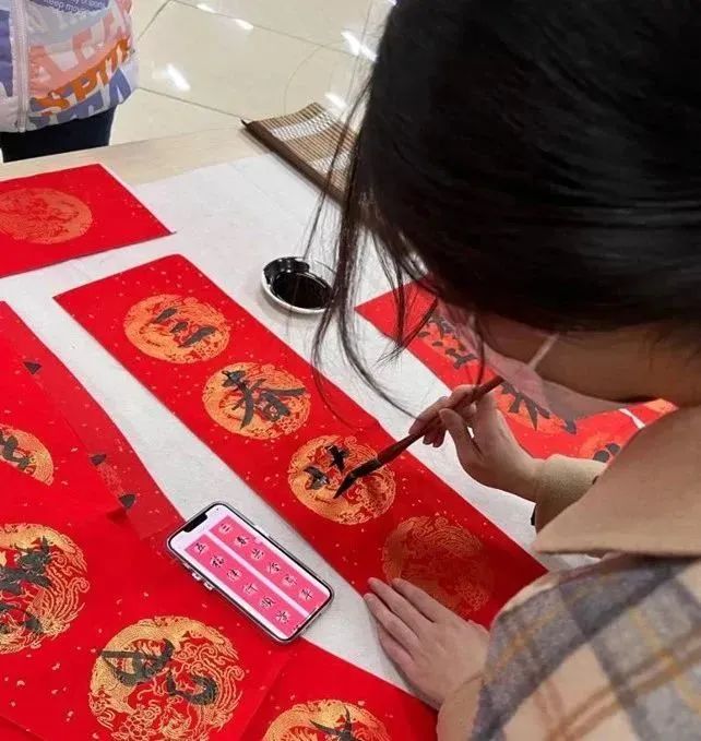“千门万户曈曈日,总把新桃换旧符”。春联是中国特有的文学形式,起源于桃符(周代悬挂在大门两旁的长方形桃木板),而春节贴春联的习俗起源于宋代,并于明代开始盛行。春联具有祈福、装点居所的传统民俗功能,反映了人民大众的风俗和信仰,寄托着人们对未来的美好愿景和期许。支部成员自己挥毫泼墨,感受书法的魅力,并与家人一起张贴春联,辞旧迎新,祝福我们的祖国,新春快乐,龙腾盛世!