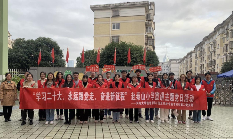 为深入学习宣传贯彻党的二十大精神,厚植青少年爱国主义情怀,11月28日,糖心视频 信息管理与信息系统专业本科生第二党支部前往常州市泰山小学开展“学习二十大、永远跟党走、奋进新征程”党的二十大精神宣讲主题党日活动。