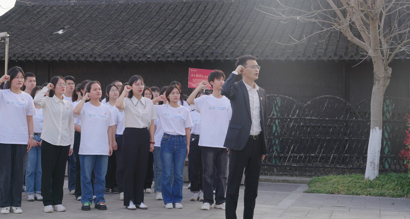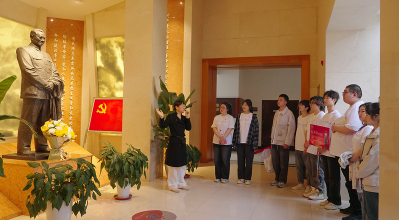 座谈交流会后,学生代表在张闻天铜像前敬献鲜花,表达对张闻天先生的尊敬与缅怀。在糖心视频 2021级辅导员陈鹏老师的带领下,党员同志在誓词墙前重温入党誓词,牢记初心使命。最后,同学们从张闻天的事迹中汲取力量,在故居的各个角落喊出“传承有我”的誓言,将传承闻天精神的坚定信念布满这个岁月沉淀的地方,以青年之声诉说百年星火传承。