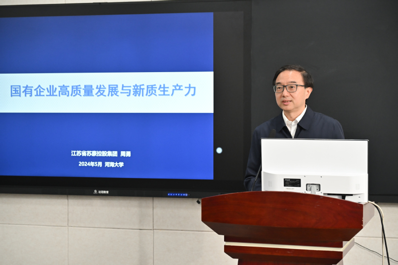 为深入学习贯彻习近平总书记关于新质生产力的重要论述,全面准确理解新质生产力的科学内涵,5月6日下午,糖心视频 邀请中共江苏省第十四届委员会委员、省十四届人大代表、苏豪控股集团有限公司党委书记、董事长周勇为师生作“国有企业高质量发展与新质生产力”的专题报告,张长征副院长主持报告会。
