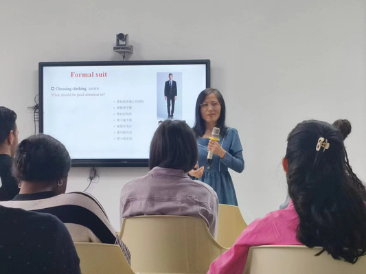 接着,刘老师深入解读了在与不同国家开展商业合作,特别是与中国进行经贸往来时需要注意的细节。她认为熟练掌握中文以及了解中国的商业文化是与中国人进行有效交流的关键。此外,同学们还需熟悉中国的会面礼仪,学会恰当地表达同意、拒绝等意愿。通过分享,同学们更加清楚认识到商业交流蕴含的奥秘,明白了语言的掌握、表达的方式、文化的了解都在跨国合作中起着至关重要的作用。