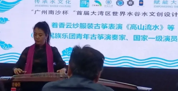 启动仪式开始前,中央民族乐团青年古筝演奏家、国家一级演员张璐,身着广东南沙非遗香云纱服装为与会嘉宾奉献了一曲《高山流水》,在悠扬的古筝声中,向与会嘉宾缓缓展开一幅充满岭南文化的南沙崭新画卷。