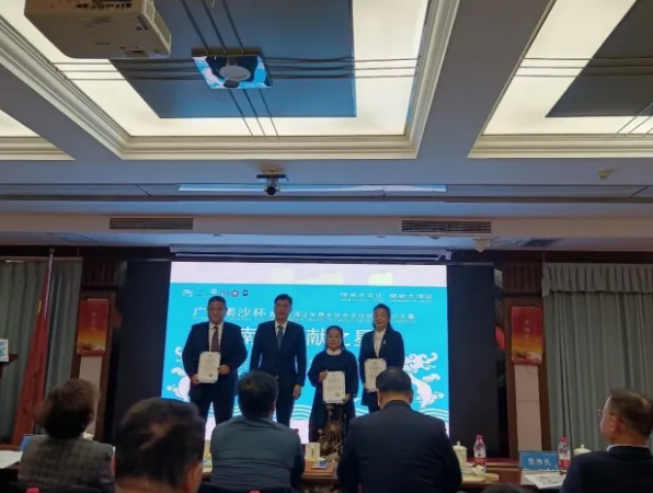 主持人邀请曹淑敏、王红育、郑宇辉、凌先有、张阳、周海炜、张伟民、李明、欧阳健华等嘉宾代表一起手持画笔为广州南沙杯大赛“点彩”,共绘广州南沙水文化奋进新征程的崭新画卷。本届大赛编号001号水文创大赛作品诞生的同时,也宣告本届水文创大赛正式启动。全体创作者签名后与001号水文创作品合影并现场捐赠给本届大赛组委会收藏。