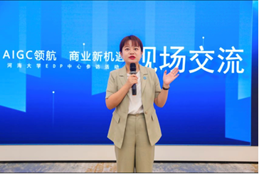 在主题分享环节中,技术专家刘浛博士为学员们带来了精彩的演讲,深入解析了生成式人工智能(AIGC)的技术原理、应用场景以及未来发展趋势。未来将发挥AI Agent在企业端的应用潜力。他指出,AIGC作为当前人工智能技术的重要突破之一,正引领着商业领域的深刻变革,从内容生成、数据分析到决策支持,AIGC正逐步成为企业优化运营、提升效能的重要工具。
