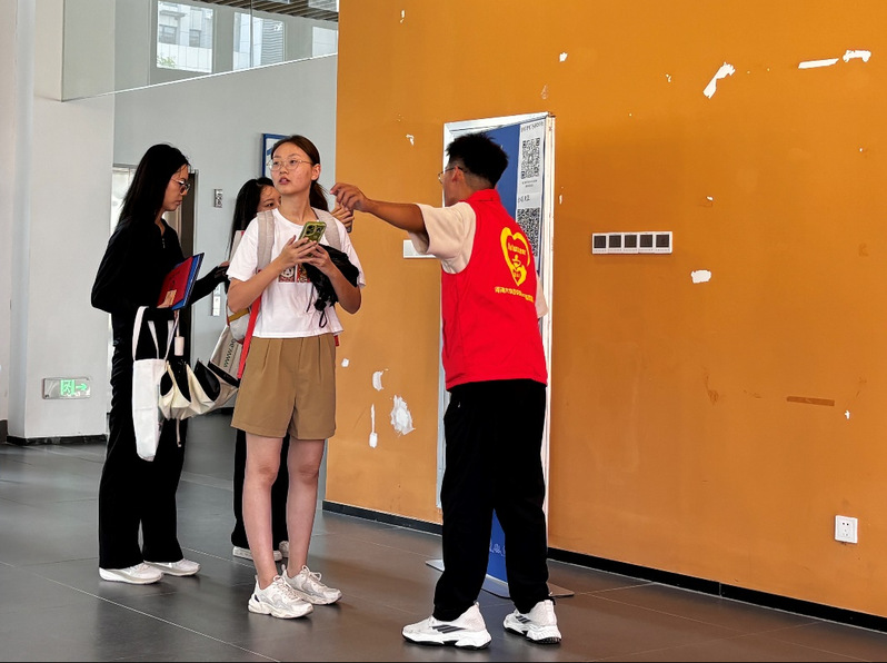 穿着红色马甲的商院志愿者们穿梭在校园为新生服务,在新生报到注册点,志愿者们核验身份、信息登记、发放礼包;在宿舍楼下,志愿者们发放物资、引导路线、搬运行李,他们以饱满的热情、细致的服务向新生们传递关怀与美好。