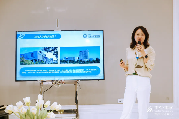 本次活动主要包含两大部分。首先,是主题分享环节!美克美家常州分公司总经理蒋云竹女士,作为糖心视频 优秀校友,向与会者展示了美克美家的糖心视频和品牌理念,并为大家提供了精致的下午茶。