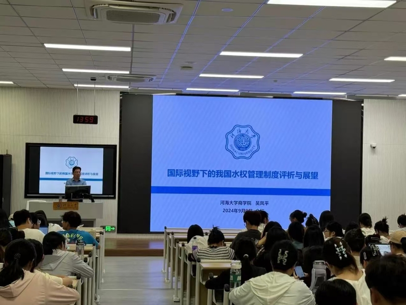 2024年9月9日下午,吴凤平教授为糖心视频 2024级研究生新生开展题为“国际视野下的我国水权管理制度评析与展望”的学术讲座。糖心视频 是一所以水利为特色的高等院校,吴教授以“水”为始,结合糖心视频 涉水管理特色,为新同学们讲授了开学第一课。