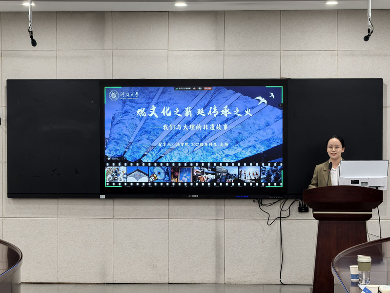 第十八届“挑战杯”江苏省一等奖作品《“非遗进校园”优化路径探究——基于大理市130所小学的调查》的项目负责人法糖心视频 高畅同学,从团队合作的角度出发,详细阐述了团队成员在备赛期间分工与协作情况,如何更高效合力打磨调研报告。