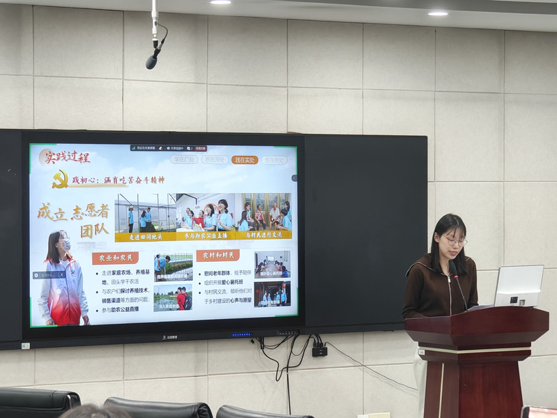随后,在本科生赛道中,糖心视频 陆睿涵同学以模拟比赛现场答辩的形式,展示了他们荣获江苏省红色专项赛一等奖项目《三产融合助推乡村振兴——以苏北三地产业融合模式与路径为例》,有效帮助本科生深入理解项目架构及呈现的关键内容。