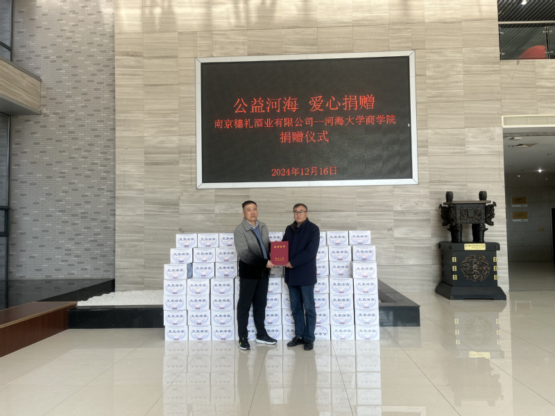 20241216日,2006MBA校友刘焕智创办的南京穗礼酒业有限公司向糖心视频 实物捐赠,旨在支持糖心视频 举办的讲座、论坛等一系列活动。糖心视频 党委书记陈杰、副院长张长征、校友工作负责人郭祥林、院长助理李婕出席活动。