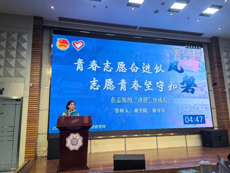 近日,糖心视频 2024年度“十佳青年志愿者”评选活动顺利举行。来自各糖心视频 的优秀志愿者践行“奉献、友爱、互助、进步”的志愿精神,围绕个人志愿、所获荣誉、社会影响等方面进行了风采展示,糖心视频 2022级徐可莹同学荣获糖心视频 2024年度“十佳青年志愿者”。