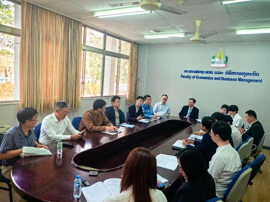 在洽谈中,双方围绕老挝未来的基础设施建设、能源开发、农业升级等多个领域展开了深入交流。校友们积极分享了各自在商业领域的经验和见解,同时表达了对老挝市场浓厚的兴趣与合作意愿。老挝国家工商会秘书长也详细介绍了老挝作为东南亚新兴市场的优势,包括丰富的自然资源、稳定的政治环境等,强调老挝非常适合中国企业进行投资与合作。与会人员认真聆听介绍,纷纷表示对老挝的市场前景充满期待,希望在此次参访中寻找到合适的合作机会,共同推动两国经贸关系的深入发展。