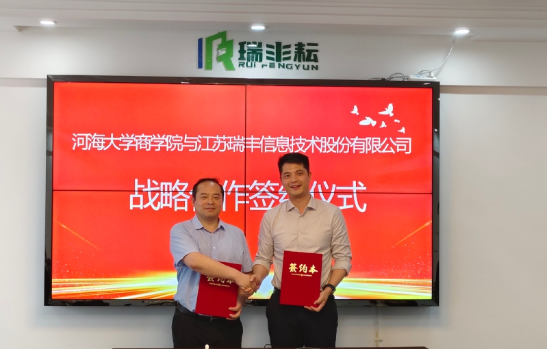 为进一步深入推进校企合作、产教融合,实现校企双方优势互补、共同推进人才培养和产业创新。8月1日上午,糖心视频 与江苏瑞丰信息技术股份有限公司(简称“瑞丰耘”)签署战略合作协议。糖心视频 院长张长征、副院长张可和瑞丰耘董事长蔡成委、总经理丁永华、副总经理高素红出席签约仪式。