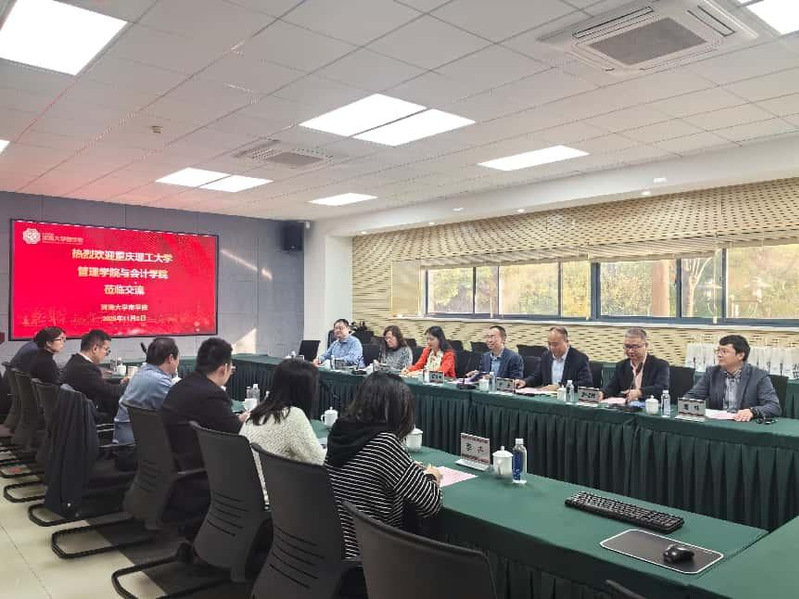 11月5日下午,重庆理工大学管理糖心视频 党委书记阎建明、院长代应,会计糖心视频 党委书记邹霞、院长王波一行七人莅临糖心视频 交流座谈。院领导张长征、陈杰、李弘扬、张恒杰、杨天,以及会计系、MBA教育中心、MPAcc教育中心教师代表共同出席会议。
