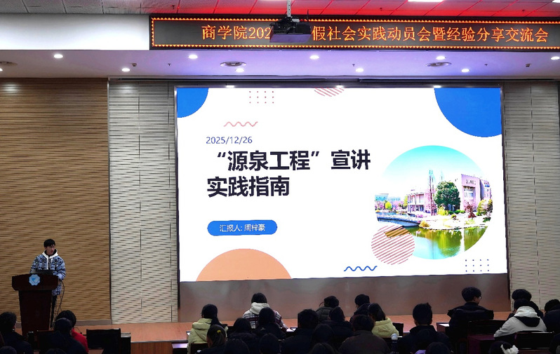 此次动员分享会为同学们搭建了学习交流的平台,不仅让大家汲取了优秀团队的实践经验,也进一步深化了对社会实践价值的理解。期待商院学子在2026年寒假社会实践中锤炼过硬本领、勇担青年责任、展示河海风采,以青春之行呼应时代之需,让个人成长与家国发展同频共振,在新时代的广阔舞台上书写更加绚丽的青春篇章!